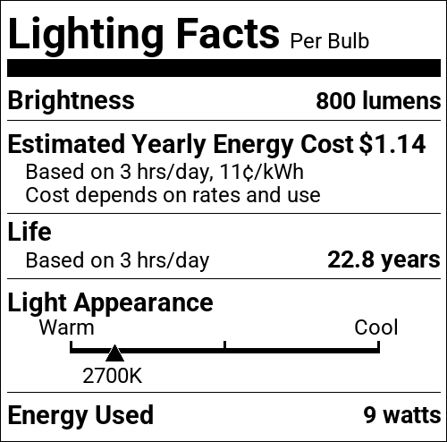 | Incandescent Equivalent | 60W |