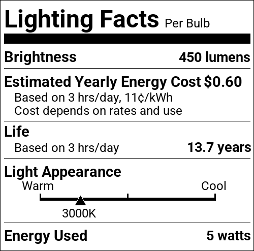 | Incandescent Equivalent | 40W |
