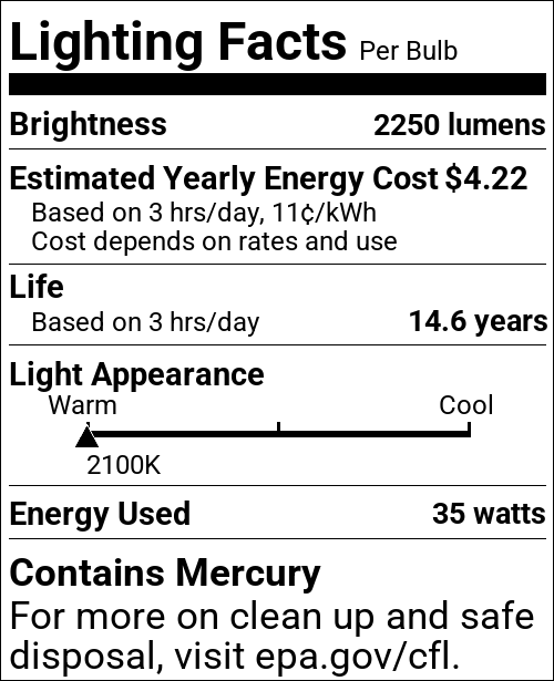 | CCT (Kelvin Temp) | 2100K |