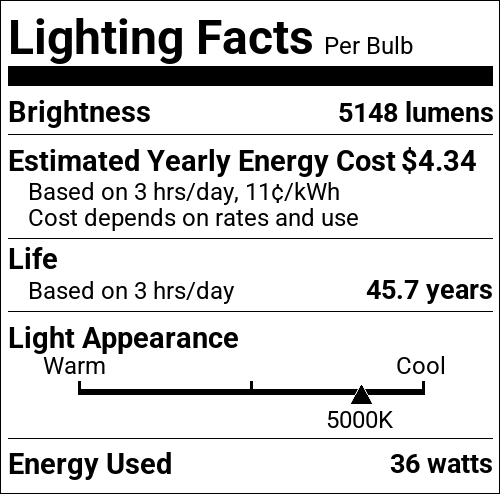 | CCT (Kelvin Temp) | 5000K |
