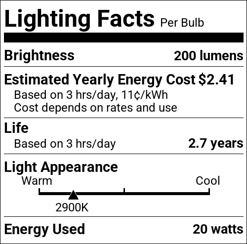 | CCT (Kelvin Temp) | 2900K |