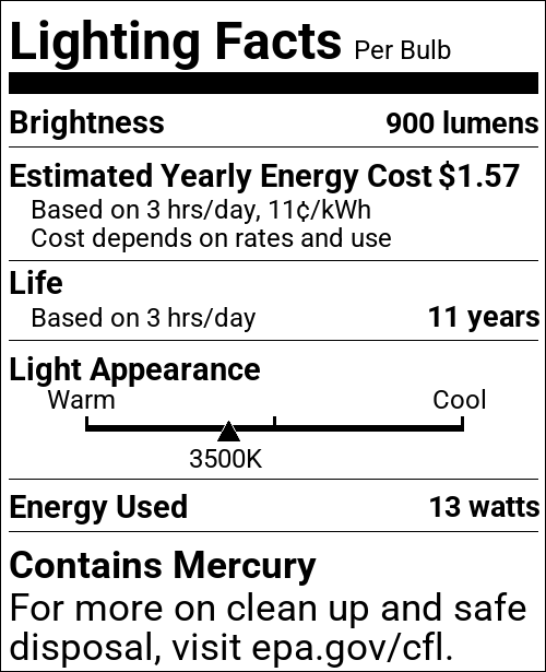 | CCT (Kelvin Temp) | 3500K |