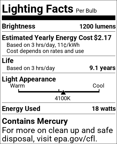 | Incandescent Equivalent | 75W |