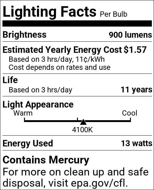 | Incandescent Equivalent | 60W |