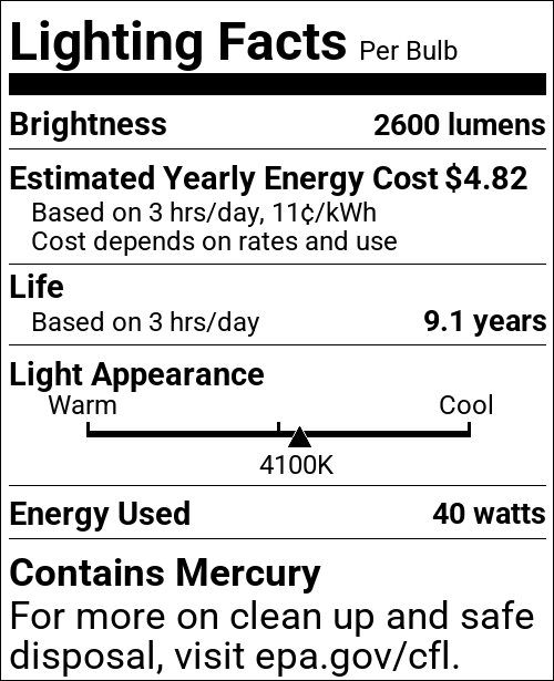 | CCT (Kelvin Temp) | 4100K |