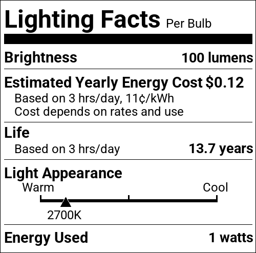 | CA Regulations | Exempt - <200 Lumens |