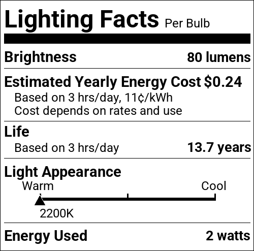 | Incandescent Equivalent | 15W |
