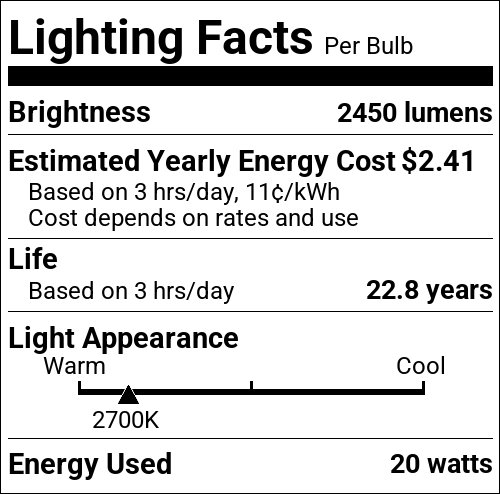 | CCT (Kelvin Temp) | 2700K |