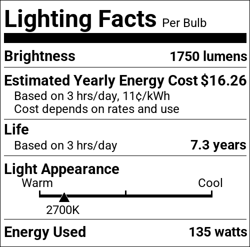| CCT (Kelvin Temp) | 2700K |