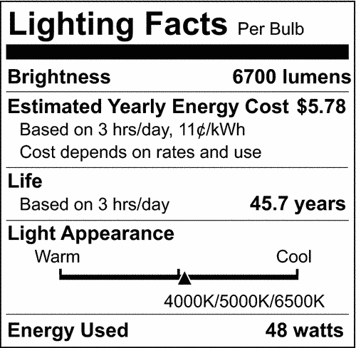 CCT (Kelvin) | 4000K/5000K/6500K |